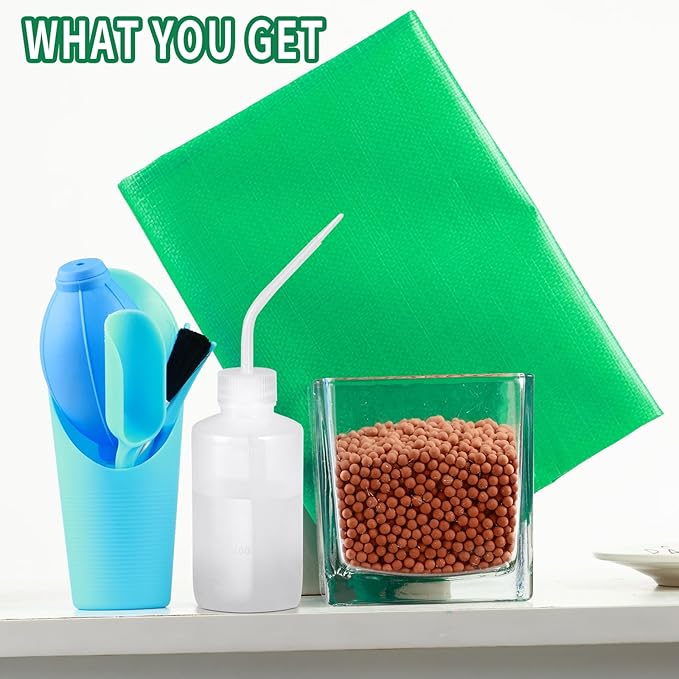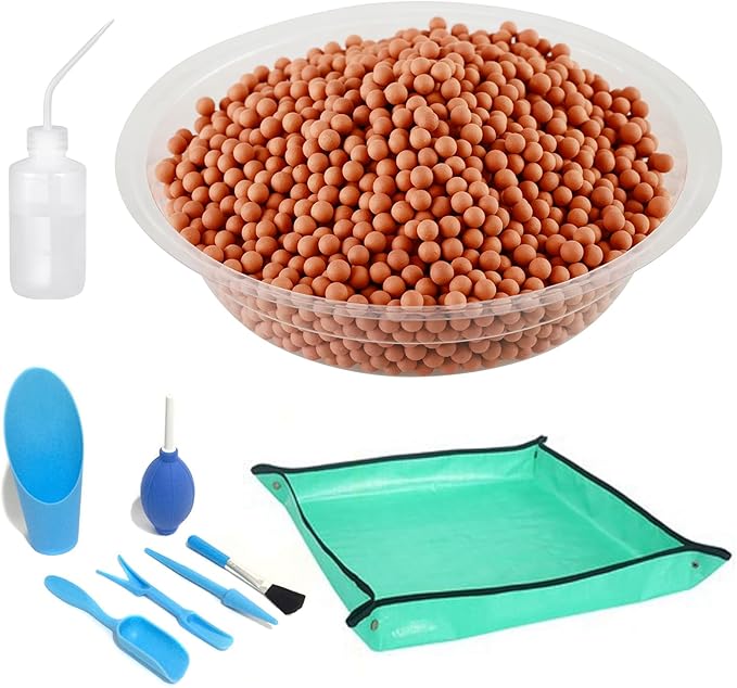 - Great Value Packages: What Do You Get? In this clay pabble set, you will get 4lb of ceramsite (size 4-5mm), a set of succulent tools, a water bottle and a waterproof PE planting mat to avoid soiling the floor when planting.
